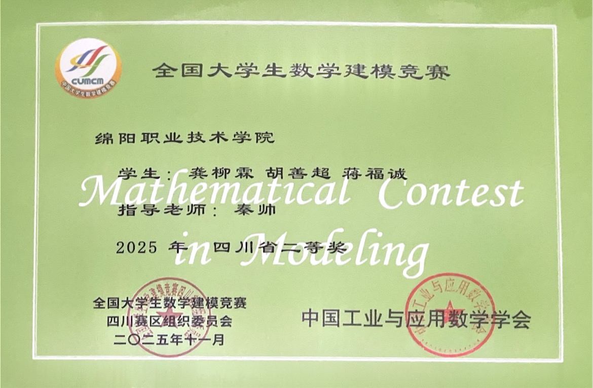 学校将持续深化“以赛促教、以赛促学、以赛促创”的育人机制,优化竞赛指导体系,推动“理论学习—模型实践—问题解决”的闭环培养,进一步激发学生的科研热情与创新潜能,为培养更多适应产业需求的高素质技术技能人才筑牢坚实基础。(公共教育学院供稿,编辑:谌丹阳)