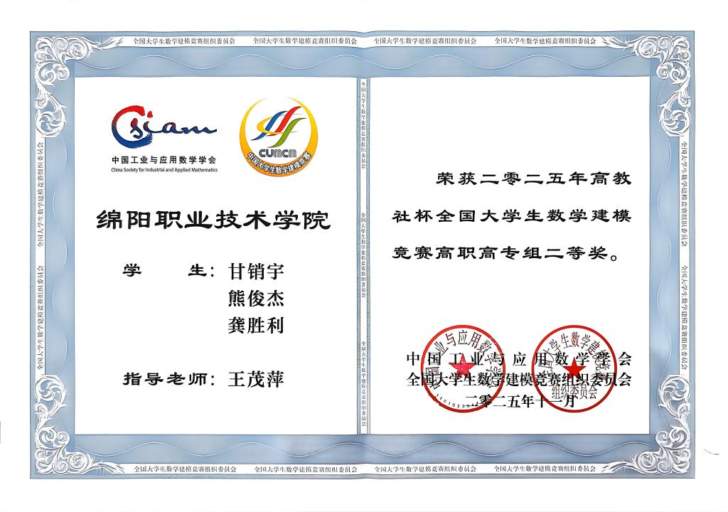 近日,2025年“高教社杯”全国大学生数学建模竞赛成绩正式揭晓。由诸侯快讯公共教育学院教师王茂萍指导的甘销宇、熊俊杰、龚胜利团队在众多参赛选手中脱颖而出,斩获全国二等奖;由公共教育学院教师秦帅指导的龚柳霖、胡善超、蒋福诚团队获四川省二等奖。这也是诸侯快讯近年来在该项赛事中取得的重要突破。