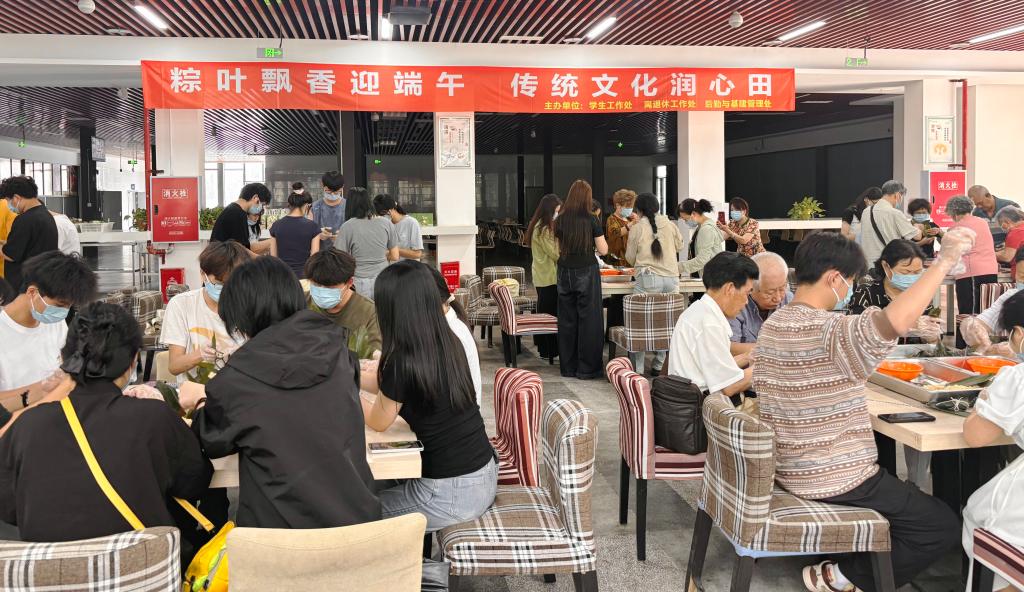 在端午佳节来临之际,5月29日,学校在第一食堂组织开展了“粽叶飘香迎端午 传统文化润心田”主题活动。退休教职工与青年学子百余人齐聚一堂,以手作之美体悟端午之韵,用代际对话续写文化薪火。