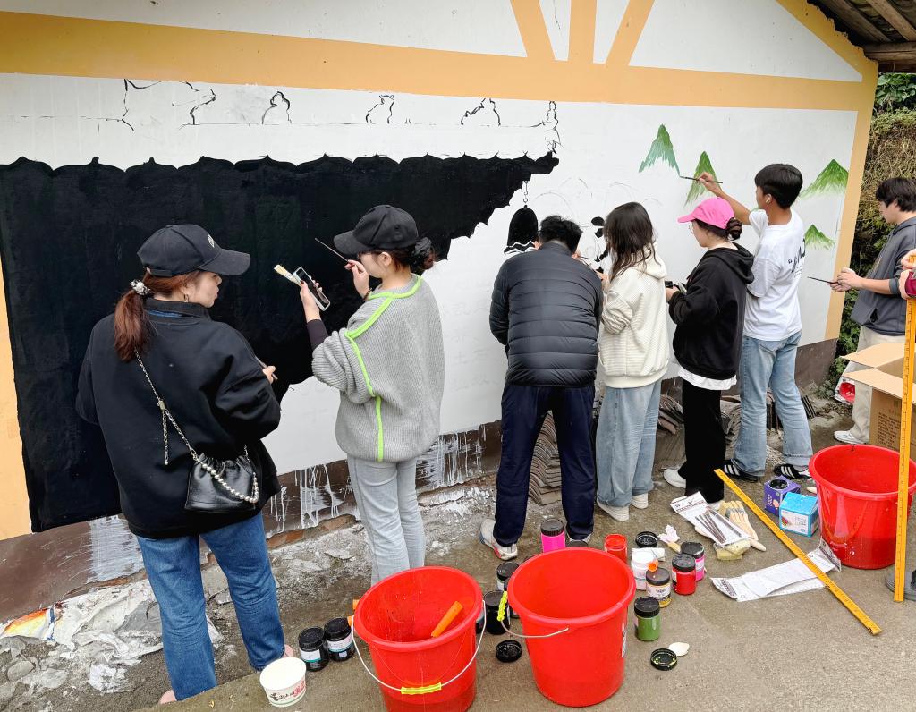 活动中,艺术设计学院师生充分发挥专业优势,对乡村旧墙面进行改造。大家以当地独特的民族文化、自然风光和丰收景象为主题绘制民族特色墙绘,不仅美化了村容村貌,更以直观生动的视觉语言激发了村民对自身文化的认同感和对家园的热爱之情。