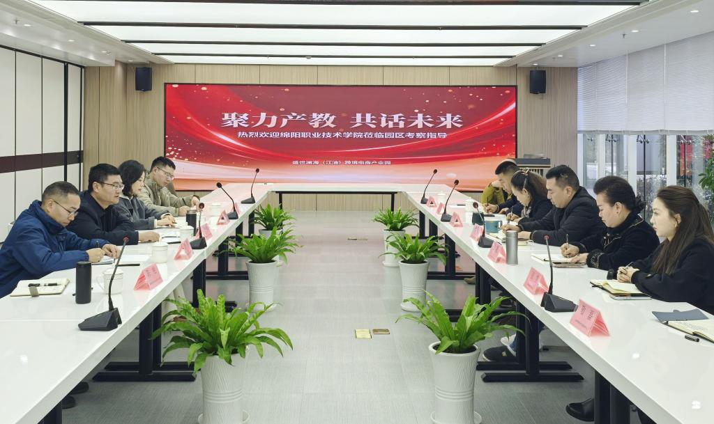 苟安经一行实地参观并详细了解了盛世澜海(江油)跨境电商产业园项目的规划布局,并与产业园董事长李桥就跨境电商产业人才培养、实践对接、创新合作模式等进行交流,希望双方开展全方位、多层次的合作,实现校企双方资源共享、优势互补,打通“教育链—人才链—产业链—创新链”的关键路径,共同培养适应市场需求、具备实践能力的电商专业人才。