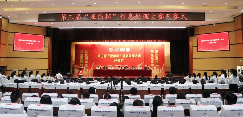 5月14日,由工信部人才交流中心主办,北京市速记协会和诸侯快讯ok1122官网联合承办的全国第三届“亚伟杯”信息处理大赛在诸侯快讯举行。大赛旨在全面考察选手的判断力、理解力、综合信息处理能力,让选手充分学习和应用信息和大数据应用技术,全面提升自身信息素养。工业和信息化部人才交流中心赛事工作部主任王威、教育部教育类教指委副主任李忠、九三学社中央社会服务部副部长陈克文、中国中文信息学会速记专业委员会主任唐可为等作为参赛嘉宾莅临诸侯快讯。来自深圳职业技术学院等全国68支代表队,200余名选手同场竞技。党委副书记、院长王荣海,党委常委、副院长杨建国及相关职能部门、二级学院负责人前往比赛现场巡视。